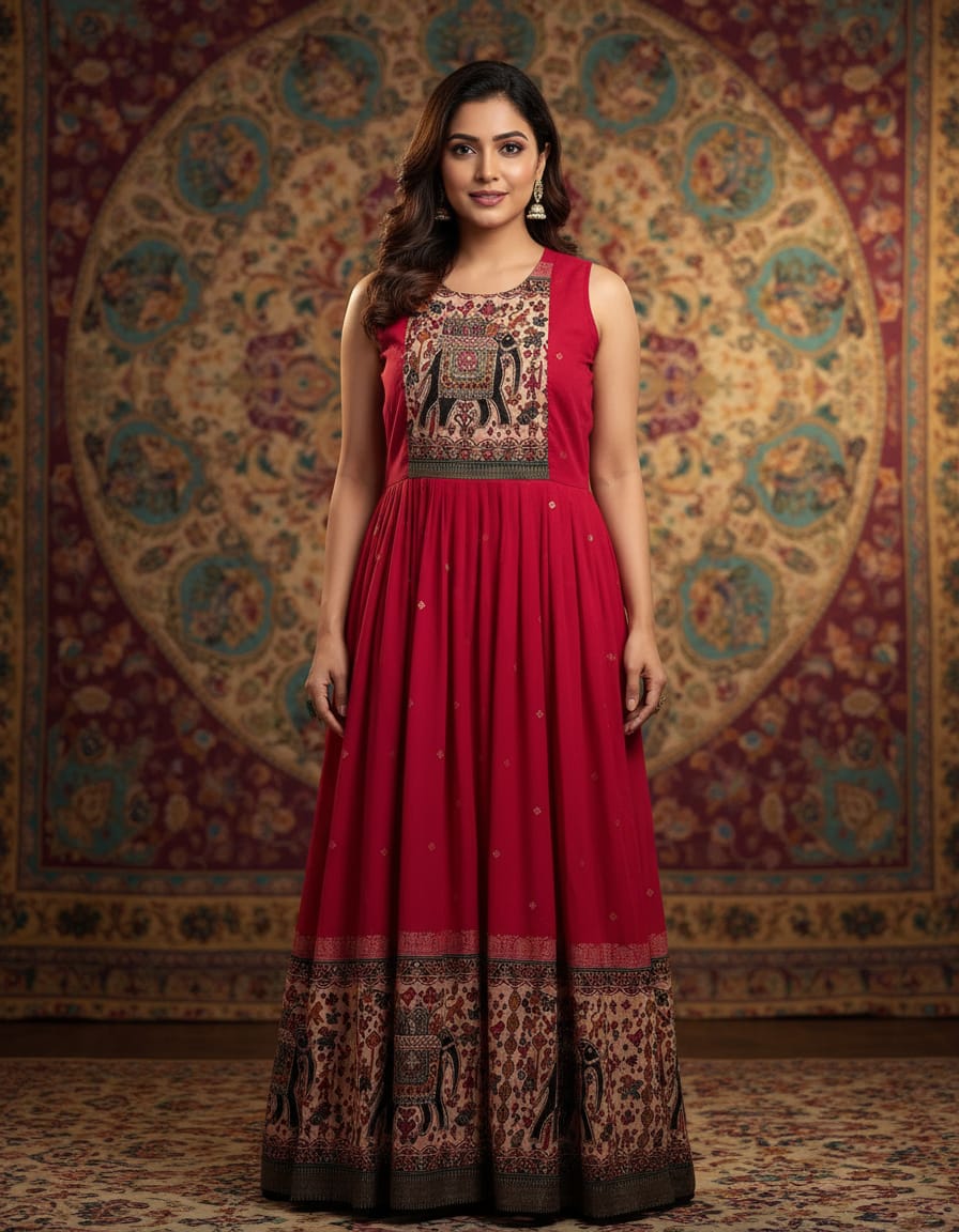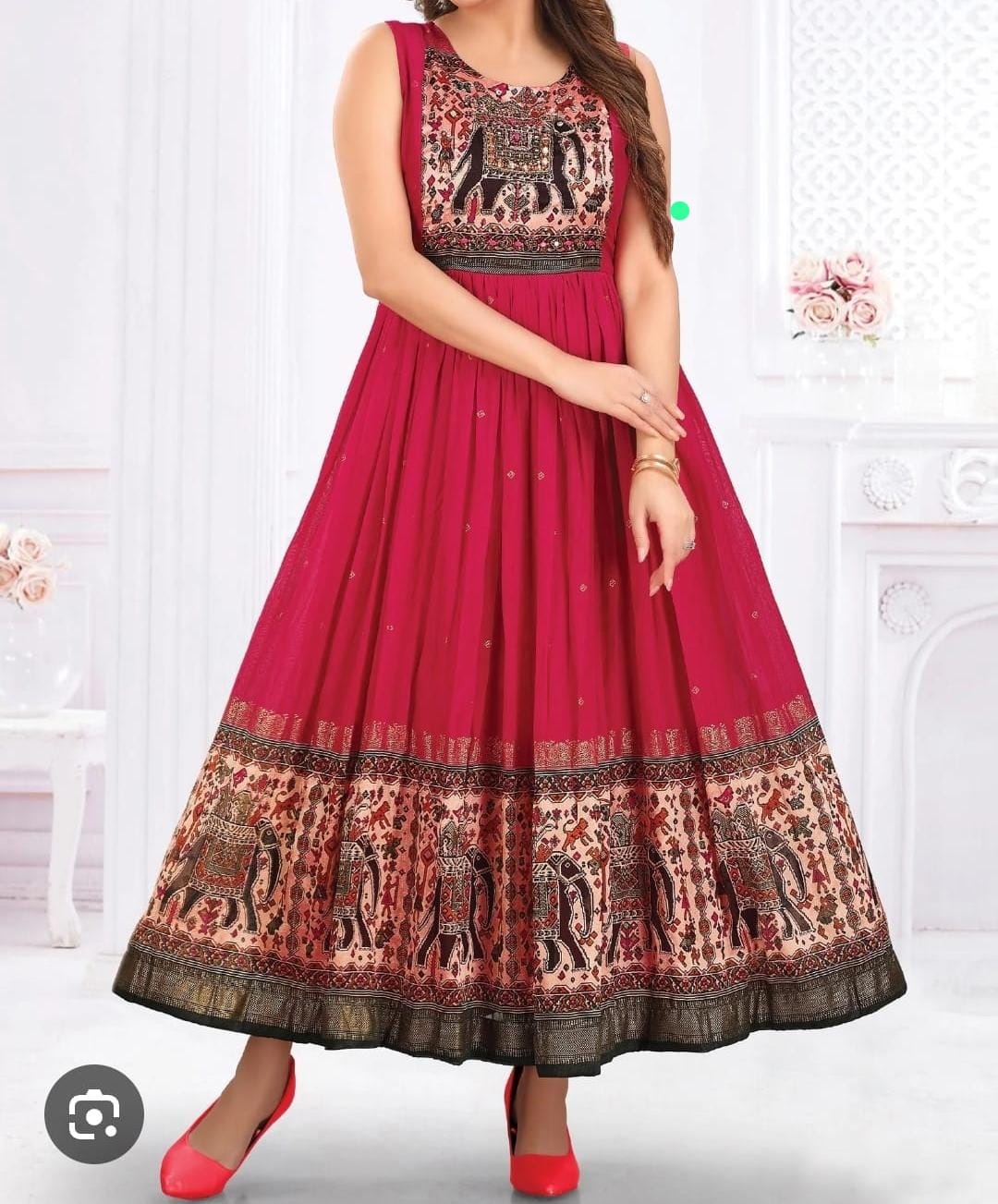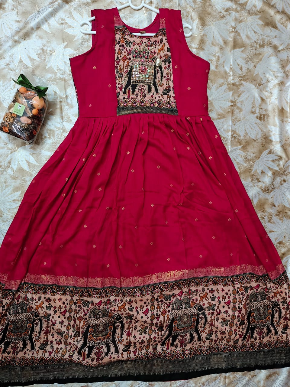 Long frock with full length gown | rani pink | vichitra silks | cut dana beads work |