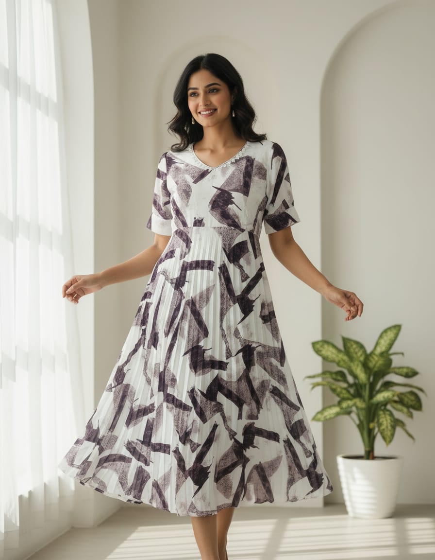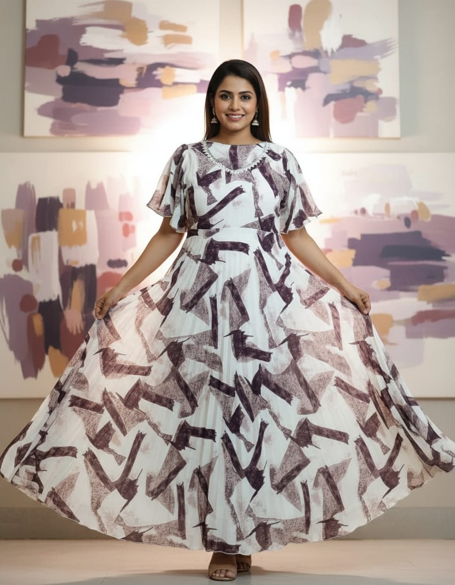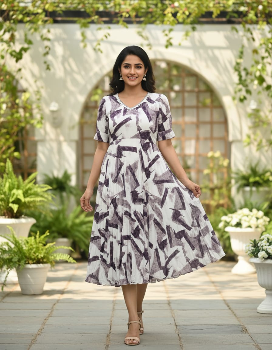 - white-purple stylish long umbrella frock