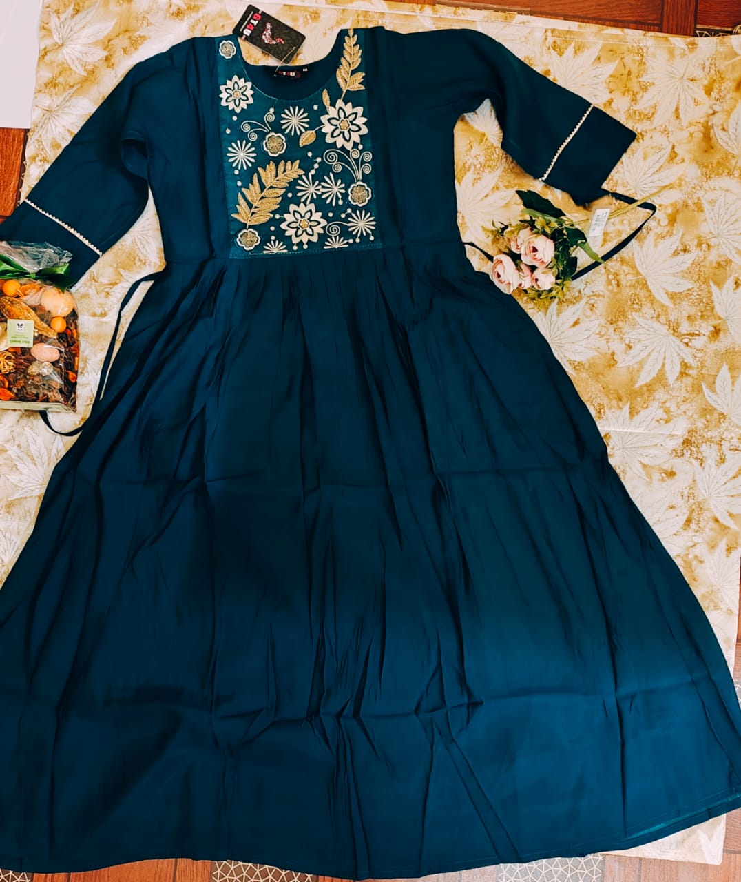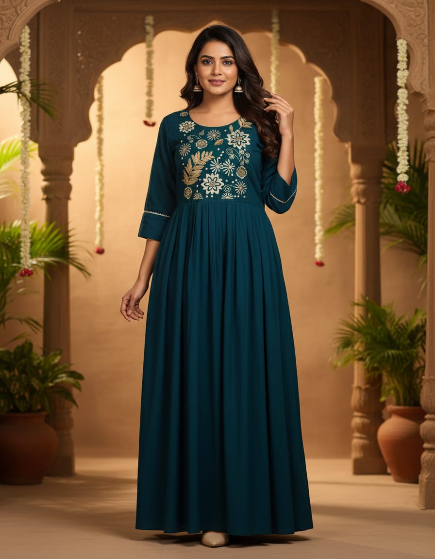 • teal blue Anarkali kurta stylish outfit