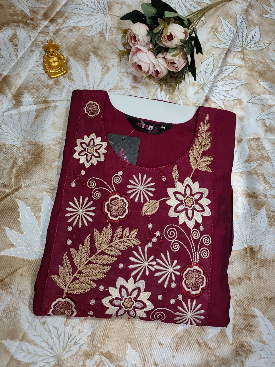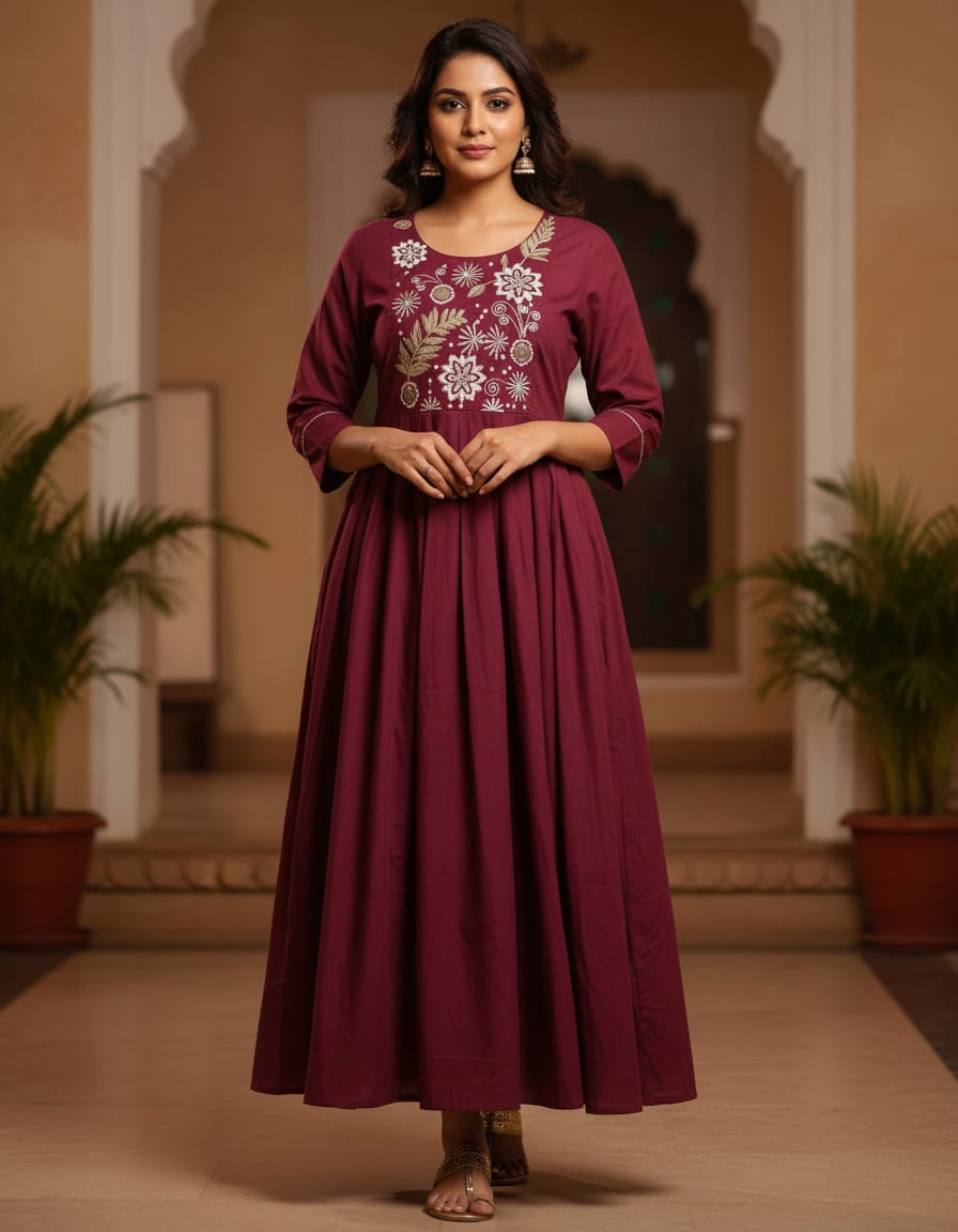 • maroon color anarkali kurta stylish outfit
